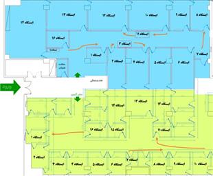 توجه فرمایید گردش بین ایستگاه ها از درب های داخلی خواهد بود به جز مواردی که با فلش در تصویر مشخص است.